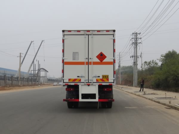 随底盘选装驾驶室;选装起重尾板(收起状态水平长度为290mm),尾板质量为545kg;厢体顶部封闭,不可开启;运输具有独立容器(瓶)包装的易燃气体:液化石油气,原油气,压缩天然气,乙炔,甲烷,乙烷,丙烷,丁烷,丙烯,丁烯,二甲醚,打火机或打火机加油器(装有易燃气体),压缩氢,类项号:2.1;运输具有独立容器(瓶)包装的非易燃无毒气体:液化气体(非易燃,充有氮,二氧化碳或空气),压缩氧(氮,空气,氦,氩,氖),二氧化碳,类项号2.2;运输具有独立容器(瓶)包装的毒性气体:压缩煤气,硫化氢,类项号:2.3;该车为危险品货物运输车;厢体选装瓦楞板结构,厢体侧面选装开门型式及位置或不带侧开门,选装百叶窗;仅采用前轮盘式制动器,前置排气管,子午线轮胎,限速装置的底盘,限速80km/h;后轴采用空气悬架;该车安装具有卫星定位功能的行驶记录仪; ABS型号:3631010-C2000,4460046440;生产厂家:东科克诺尔商用车制动系统(十堰)有限公司,威伯科汽车控制系统(中国)有限公司;侧面防护及后下部防护装置材料材质:Q235,连接方式:焊接加螺栓连接;后下部防护装置断面尺寸(宽赘?:50?20(mm),离地高度:495mm. 该车后轴为采用空气悬架;该车型可选装ETC车载装置. |