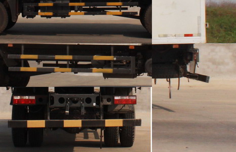 车厢顶部封闭,不可开启,选装平板结构厢体和瓦楞板结构厢体.选装保温复合板,侧面选装不开门或单开门或双开门,选装2杆2锁、4杆4锁.选装液压尾板,收起状态的水平长度为290mm.尾板质量450kg.ABS系统生产厂家,型号 :焦作博瑞克控制技术有限公司,J ABS;襄阳东风隆诚机械有限责任公司,ABS/ASR-24V-4S/4M.应装具有卫星定位功能的行驶记录仪,侧面及后下部防护装置材料为Q235,与车架采用螺栓连接.后下部防护装置断面尺寸(mm):120?0,离地高度:480mm.选装液压尾板时,后防护为三段式,与车架焊接.随底盘选装遮阳罩,绿色滤光带,踏步,高顶驾驶室及铝合金油箱.安装限速装置,限制最高车速不得超过80km/h,排气管前置,前轮安装盘式制动器,该车运输具有独立容器包装的介质为:GB 12268-2012《危险货物品名表》:第2.1项中液化石油气,压缩天然气的气瓶,第2.2项中的氧气,氮气,二氧化碳气体的气瓶.后轴安装空气悬架. 该车后轴为采用空气悬架.转向轮安装爆胎应急防护装置.该车型可选装ETC车载装置。 |
