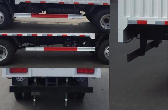 车厢顶部封闭,不可开启.该车为危险品运输车.该车运输具有独立容器包装的易燃气体,运送危险品类项号为2.1;运输具有独立容器包装的非易燃无毒气体;运送危险品类项号为2.2.仅选用前盘式制动器,前置排气管,子午线轮胎,限速装置的底盘,限速80km/h.仅选装底盘单排驾驶室.选装不带导流罩.选装新结构的导流罩.选装不同侧面结构的驾驶室.选装新结构的后部灯具.选装带通气结构的货箱.选装不同结构的货箱.货箱选装液压尾板.尾板收起状态的水平长度250mm.侧防护及后下部防护装置的材质为R13钢,连接方式为螺栓连接,后部防护离地高度390mm,断面尺寸为120?0mm.油耗值18.3对应发动机4B2-110C50,WP2.3Q110E50.ABS生产厂家/型号:浙江万安科技股份有限公司/VIE ABS-II.安装具有卫星定位功能的行驶记录仪.选装新前脸的驾驶室.选装新的翼子板结构.转向轮安装爆胎应急防护装置.尾板质量为340Kg.后防护和液压尾板联动,避免尾板工作时产生干涉. |
