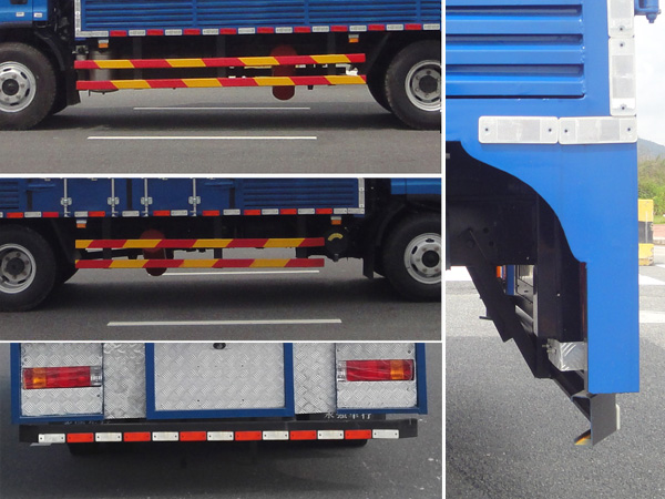 厢式车辆车厢顶部封闭,不可开启。该车为危险货物运输车.危险品类项号:3。仅选用排气管前置、前轮盘式制动器、子午线轮胎、限速装置,限速80km/h、转向轮装备轮胎爆胎应急防护装置。ABS生产厂家:1.浙江万安科技股份有限公司/VIE ABS-II.2.广州瑞立科密汽车电子股份有限公司/CM4YL。安装具有卫星定位功能的行驶记录仪。侧面防护装置材料材质为Q235,螺栓连接;后下部防护装置的主要尺寸参数:断面尺寸120*80mm,螺栓连接,材料:Q235.离地高度330mm。车长7070对应后悬2020,车长7170对应后悬2120,车长7270对应后悬2220,仅选用CA4DD1-15E5发动机,油耗值为23.38L/100km。选装液压升降尾板,液压尾板收起状态的水平长度为290mm,尾板质量:450kg.随底盘选装导流罩、保险杠、侧门结构、不同前脸驾驶室、单排驾驶室、改侧窗的驾驶室。选装单开门、对开门、单侧两个双开门或不开侧门;选装车厢前后和两侧上下部分开百叶窗或者不开百叶窗。车厢板可为瓦楞板、平板、彩板、蜂窝板和卷帘门结构及彩绘图案。 |