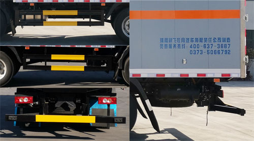 该车为危险货物运输车; 厢体顶部封闭,不可开启,厢体两侧均可选装1个或2个单侧门或双开侧门,可选装不带侧门的厢体,侧门和后门可以选择单门杠或者双门杠,单侧门可选向左或右开启;运输具有独立容器(瓶)包装的易燃气体:液化石油气,压缩甲烷或甲烷含量高的压缩天然气,乙炔,乙烷,丁烷,丁烯,丙烯,二甲醚,压缩氢,类项号为2.1;运输具有独立容器(瓶)包装的非易燃无毒气体:二氧化碳,压缩氧(氮,空气,氦,氩,氖),类项号为2.2;该车仅选用前轮为盘式制动器底盘;仅选用排气管前置的底盘;仅使用子午线轮胎;仅选用3800轴距的底盘; 转向轮安装轮胎爆胎应急防护装置;ABS系统型号/生产企业:ABS-E/威伯科汽车控制系统(中国)有限公司,ABS-VI稥/广州瑞立科密汽车电子股份有限公司; 该车安装具有卫星定位功能的行驶记录仪,该车装配有限速装置,限速80km/h; 侧、后防护材料:Q235,连接方式:螺栓连接;后防护断面尺寸:120mm?0mm,后防护离地高度:480mm;仅使用发动机F3.8NS6B156,油耗值为21.0L/100km. |