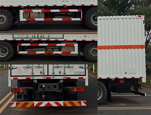 厢体顶部封闭,不可开启.该车为危险品运输车.ABS系统型号为446 004 6300,生产企业为威伯科汽车控制系统(中国)有限公司。该车装MC07.27-60、MC07.31-60、MC07.34-60、MC09.35-60、MC09.35B-60、MC09.38-60、WP7.300E61发动机对应的油耗申报值均为32.0L/100km,安装限速装置,最高车速79km/h,安装具有卫星定位功能的行驶记录仪,仅装子午线轮胎,后轴采用空气悬架,前轮安装盘式制动器,安装前置排气管;侧、后防护材质:Q235;防护连接方式:侧防护为螺栓连接,后防护与车架纵梁螺栓连接,后防护断面尺寸:60?40(mm);后防护离地高度355mm.运输介质:运输具有独立容器(瓶)包装的:液化石油气、压缩甲烷或甲烷含量高的压缩天然气、乙炔、乙烷、丁烷、丁烯、丙烯、二甲醚、压缩氢;选装运输具有独立容器(瓶)包装的非易燃无毒气体:二氧化碳,压缩氧(氮,油气),空气,氦,氩,氖. 类项号:2.1和2.2. 选装非易燃无毒气体标识。选装液压尾板,收起状态的水平长度为290mm,加装尾板时整备质量为9920kg,不装尾板时整备质量为9460kg,仅选用轴距1800+4300。 该车后轴为采用空气悬架. |