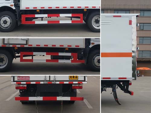 1、该车用于危险品运输,厢体顶部封闭,不可开启.危险货物运输车辆的类型(FL型车辆)。该车运输具有独立容器(瓶)包装的易燃气体:GB 12268-2012《危险货物品名表》第2.1项的液化石油气,压缩天然气,乙炔,乙烷,丙烷,丁烷,异丁烷,丁烯,甲烷,丙烯,环丁烷,丙二烯,二甲醚,甲乙醚,打火机或打火机加油器(装有易燃气体),氢;2.2项中的压缩氧气,压缩氮气,二氧化碳气瓶.危险品标志牌选挂2.1类易燃气体警示牌或挂2.2类非易燃无毒气体警示牌。2、选装侧开门,侧门可为单开门或双开门或不开门,选装侧门型式及位置。随底盘选装前面罩,前保险杠,前组合灯具及前雾灯。3、侧/后防护材料为Q235,侧防护螺栓连接,后防护焊接,截面尺寸100?0mm,下边缘离地高470mm。4、仅采用装配前轮盘式制动器,前置排气管,子午线轮胎,限速装置的底盘;限速80km/h;该车安装具有卫星定位功能的行驶记录仪;ABS厂家及型号:襄阳东风隆诚机械有限责任公司/ABS/ASR-24V-4S/4M.发动机/油耗值L/100km对应关系分别:CY4SK261/21.3,CY4SK361/21.3,D25TCIF1/21.3,D30TCIF1/21.3,D40TCIF1/21.4,NV30-C6D/21.4,YCY30165-60/21.3,YCS04190-68/21.4。选装前面罩,前保险杠,前组合灯具,前雾灯,后视镜。 |