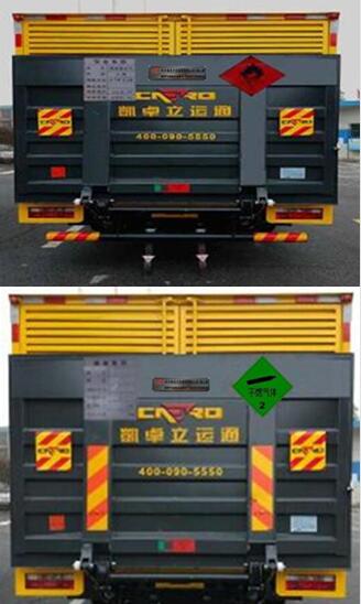 1、车厢顶部封闭,不可开启.2、运输具有独立容器(瓶)包装的易燃气体和非易燃无毒气体.运输易燃气体的介质为:溶解乙炔,丁烷,丁烯,乙烷,打火机或打火机加油器,液化石油气,丙烷,危险货物类项号为:2.1.运输非易燃无毒气体的介质为:压缩空气,压缩氩,二氧化碳,压缩氦,压缩氖,压缩氮,压缩氧,危险货物类项号为:2.2.3、侧面防护装置材料:Q235,连接方式:螺栓连接;后下部防护装置材料:Q235,连接方式:螺栓连接,断面尺寸:100mm?0mm,离地高度:400mm;4、选装侧门;5、选装不带液压尾板,选装另一种尺寸厢体。整备质量对应关系,基本型5405Kg,不带尾板时4905 Kg。另一种箱体5205 Kg,不带尾板时4705 Kg;6、只选用装配限速装置、前轮盘式制动、排气管前置、子午线轮胎的底盘;7、应装带卫星定位功能的行驶记录仪;8、ABS系统控制器型号: CM4XL-4S/4M ,ABS系统控制器生产企业: 广州科密汽车电子控制技术股份有限公司。9、该车采用发动机WP3Q130E50(最大净功率91kw)对应的油耗值20.9L/100km。10、随底盘选装新款后视镜。 |