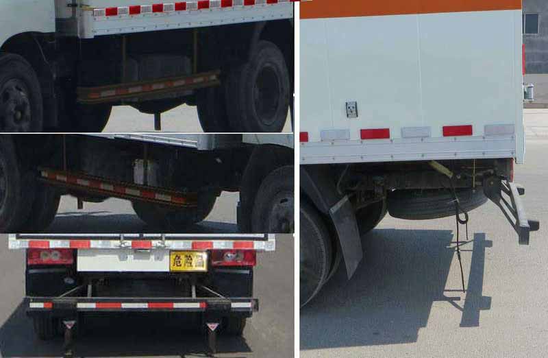 只装配ISF2.8s5R117,ISF2.8s5129T发动机.ISF2.8s5R117发动机油耗为12.5L/100km,ISF2.8s5129T发动机油耗为12.5L/100km.排气管前置,只装配6.50R16LT 12PR,7.00R16LT 8PR子午线轮胎,前轮盘式制动器,安装具有卫星定位功能的行驶记录仪.ABS系统型号/生产企业:47660 2ZS00/浙江亚太机电股份有限公司.44600XXXX0/威伯科汽车控制系统(中国)有限公司.选装瓦楞板货厢,选装单/双侧开门.导流罩可取消,选装液压尾板,收起状态的水平长度300mm.选装排气孔位置.该车运送介质为:GB 12268-2012《危险货物品名表》中的液化石油气,丁烷,丙烷,打火机或打火机加油罐,压缩煤气,压缩氧,溶解乙炔,类项号:2.1,2.1,2.1,2.1,2.3,2.2,2.1.侧防护与货箱横梁的连接方式是螺栓连接,侧防护材料为冷板 B-1.5-GB/T 708;后防护与车架纵梁的连接方式是螺栓连接,后下部防护装置材料为Q345或510L.后部防护装置截面尺寸100mm?0mm,后防护距离车辆离地的高430mm. |
