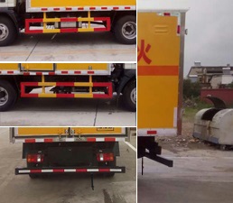 该车适用于运输危险品。厢体顶部封闭,不可开启。随底盘选装驾驶室,选装右侧箱体不开门,选装侧门型式及位置。整车长/轴距/后悬对应关系为(mm):5995/3280/1555,5995/3160/1675。仅采用底盘子午线轮胎和带ABS的底盘,该车前轮安装盘式制动器,前置排气管,装配限速装置,限速79km/h。安装带有卫星定位功能的行驶记录仪。安全装置为导静电带,用于防止静电。该车运输具有独立容器(瓶)包装的易燃气体:液化石油气,压缩天然气,乙炔,乙烷,丙烷,丁烷,异丁烷,丁烯,甲烷,丙烯,环丁烷,丙二烯,甲乙醚,打火机或打火机加油器(装有易燃气体),氢。运送危险品类项号为2.1。侧防护和后防护装置材料材质为Q235A碳钢,侧防护与箱体底部焊接连接,后防护装置与车架采用焊接连接。后防护截面尺寸(mm):100?0,离地高度为500mm。采用发动机型号YN27CRE1,YN38CRE1,CY4BK151,JE493ZLQ5,D25TCIE1,D25TCIE3对应油耗值分别为油耗 (L/100km):11.2,11.6,12.0,11.4,12.0,12.0。ABS系统型号为XH-KQ4S4M-E01,生产企业为广州市西合汽车电子装备有限公司。 |