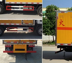 该车用于危险品运输为危险货物运输车。选装右侧箱体不开门,厢体顶部封闭,不可开启。选装侧门型式及位置。该车主要用于运输独立容器(瓶)包装的介质:粘合剂,涂料,料溶液, 油漆,煤油,机油,苯,甲醇,乙醇,丙酮,甲苯,二甲苯,类项号: 3。安装限速装置,限速80km/h。该车安装带有卫星定位功能的行驶记录仪。安全装置为导静电带,用于防止静电。仅采用前盘制动器和安装ABS的底盘。排气管前置。仅采用子午线轮胎。侧防护和后防护装置材料材质为Q235A碳钢,侧防护与箱体底部焊接连接,后防护装置与车架采用焊接连接。后防护截面尺寸(mm):110?0,离地高度为440mm。发动机4B2-95C50,WP2.1Q95E50,WP2.3Q110E50分别对应的油耗值为:12.0,12.0,12.01。ABS生产厂家/型号:1.浙江万安科技股份有限公司/VIE ABS-II.2.广州瑞立科密汽车电子股份有限公司/CM4YL。选装厢体内部结构。 |