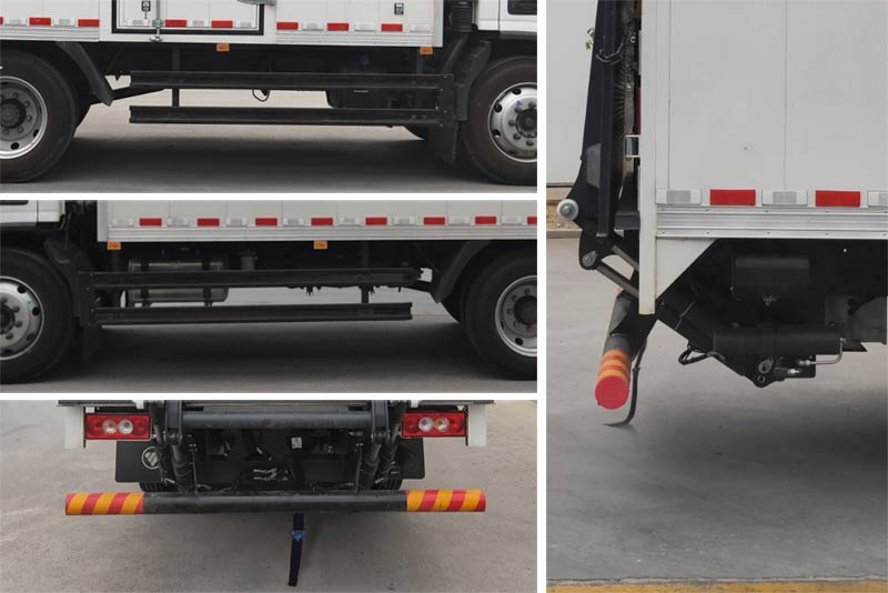 顶部封闭不可开启,该车用于运输具有独立容器(瓶)包装的易燃气体[液化石油气(罐装)、压缩甲烷或甲烷含量高的压缩天然气,乙炔,乙烷,丁烷,丁烯,丙烯,二甲醚,压缩氢]和非易燃无毒气体(二氧化碳、氧气、氮气、压缩氧(氮,空气,氦,氩,氖)),类项号分别为2.1和2.2;选装非易燃气体标识,随底盘选装导流罩,选装侧面、前面、后面百叶窗,选装侧面对开门和侧面不开门,选装不带侧门整车宽度2325mm,选装不带液压尾板(整备质量5350kg),尾板收起状态的水平长度267mm; 侧后防护材料为Q235,螺栓连接,后防护断面尺寸Φ110,离地高度为450mm,ABS型号:ABS-VI.E,生产企业:广州瑞立科密汽车电子股份有限公司.ABS型号为ABS-E,生产企业为威伯科汽车控制系统(中国)有限公司;仅装子午胎,前盘后鼓制动器,安装限速装置,限制最高车速为80km/h ,排气管前置;安装具有卫星定位功能的行驶记录仪.发动机与油耗值对应关系:仅选用F3.8NS6B156发动机,油耗值为21.02(L/100km),该车为危险品运输车辆. |