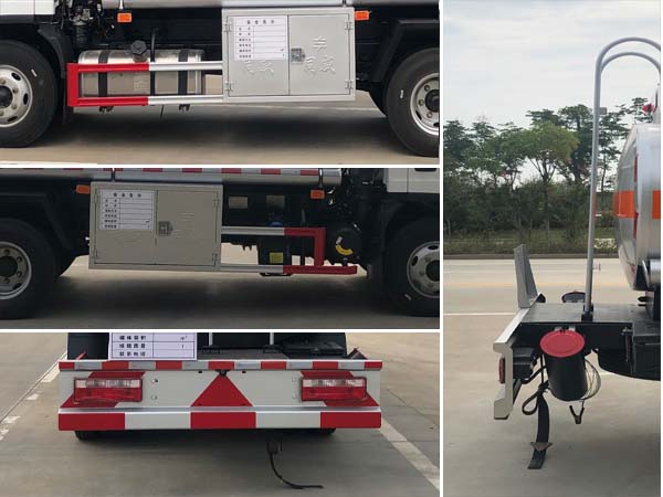 ABS型号:CM4XL-4S/4M,VIE ABS-II;ABS生产企业:广州瑞立科密汽车电子股份有限公司,浙江万安科技股份有限公司;安装有限速装置;限速装置限速(km/h):80;安装有具有卫星定位功能的行驶记录仪;选装描述:该车型可选装ETC车载装置.选装导流罩.选装新结构导流罩.选装排半驾驶室.选装改侧窗的驾驶室.选装新前脸驾驶室;侧后防护情况:侧/后防护材料均为Q235,螺栓连接和焊接;后防护截面尺寸100?0mm,下边缘离地高400mm;罐体有效容积(立方米)、罐体外形尺寸(mm):罐体有效容积4.42立方米,加油机位于车辆一侧时,罐体尺寸(长壮ぶ嶙短轴)(mm)为:3800?600?000,3600?500?000,加油机位于罐体前部时,罐体尺寸(长壮ぶ嶙短轴)(mm)为4000(加油机仓800)?750?150;专用功能及装置:该车适用于危险品运输;FL型车辆;危险货物类项号:3;其他说明:该车仅选用排气管前置,前盘制动,子午线轮胎,转向轮安装轮胎爆胎应急防护装置; |