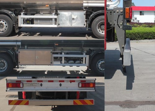 罐体有效容积:25.9立方米,罐体外形尺寸(长卓碜高)(mm):8950?490?650。选装高顶驾驶室时整车高度为3335mm,罐体顶部选装举升护栏。侧面及后下部防护装置的材质为铝合金,连接方式均为螺栓连接,后下部防护装置的截面尺寸为(宽赘?:80mm?50mm,离地高度为:400mm。仅采用轴距(mm)为1800+4575+1400底盘。仅采用装备排气管前置、前桥盘式制动器、限速装置(限速80千米/小时)、ABS和子午线轮胎的底盘.该车随底盘选装发动机对应油耗值(L/100km):MC07.28-50(43.4,43.5),MC07.31-50(43.5,43.6),MC07.34-50(43.8,43.9),MC07.35-50(43.9,43.9)。ABS系统型号为4460046300,生产企业为威伯科汽车控制系统(中国)有限公司。危险品车辆类型:FL型车辆.该车安装具有卫星定位功能的行驶记录仪.类项号为3。 该车后轴为采用空气悬架.转向轮装备有轮胎爆胎应急防护装置 。选装侧面管箱结构。 |