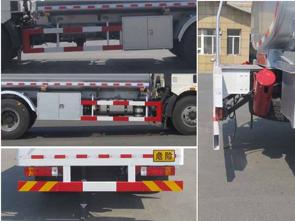 罐体尺寸:罐长5.5米,长轴2.11米,短轴1.34米.有效容积13立方米.侧后防护材质均为碳钢,螺栓连接.后防护截面尺寸为130x50(高x宽)毫米,下面距地高为490毫米.该车安装前轮盘式制动,排气装置前置.限速装置,最高车速为79km/h. ABS厂家1:WABCO,型号:4460043200,ABS厂家2:长春科密汽车制动有限公司,型号:CM4XL.安装具有卫星定位功能的行驶记录仪.危险货物运输车辆的车辆类型FL.该车型为危险货物运输车辆.油耗值和发动机对应关系:28(CA4DK1-22E51,CA4DK1-18E51),29.96(CA6DH1-22E5).采用底盘4700mm轴距.选装无罐顶防护栏,选装车辆左右两侧后部箱子.危险类项号:3.随底盘选装驾驶室. 该车后轴为采用空气悬架.随底盘选装消音器形状和安装位置.该车转向轮已随底盘装备轮胎爆胎应急防护装置.选装EBS,EBS型号:EBS3,EBS系统生产厂家:威伯科汽车控制系统(中国)有限公司.该车可选装车载ETC装置. |