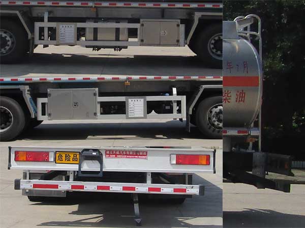 ABS型号:ABS 8;ABS生产企业:东科克诺尔商用车制动系统(十堰)有限公司;安装有限速装置;限速装置限速(km/h):80;安装有具有卫星定位功能的行驶记录仪;选装描述:随底盘选装驾驶室,选装罐体上部上走道;选装EBS,EBS型号/生产厂家:EBS5/东科克诺尔商用车制动系统(十堰)有限公司;发动机/油耗值(L/100km)对应关系为:DDi75E350-60/38.1;所用材料材质、连接方式以及后部防护装置的主要尺寸参数(断面尺寸和离地高度):侧后防护材质均为铝合金,连接方式均为螺栓连接,后防护截面尺寸(宽赘?60?20mm,下边缘离地高490mm;罐体有效容积(立方米)、罐体外形尺寸(mm):罐体有效容积25.2立方米,罐体外形尺寸(长壮ぶ嶙短轴)(mm)为:9200?300?500.仅选用1995+4500+1350mm轴距;FL型车辆;危险货物类项号:3;其他说明:仅选用排气管前置、限速装置(限速80km/h)、前轮盘式制动及子午线轮胎的底盘;安装带有卫星定位功能的行驶记录仪;后轴采用空气悬架,转向轮装备轮胎爆胎应急防护装置.该车型可选装ETC车载装置; |
