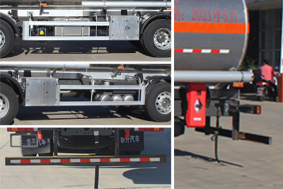 罐体有效容积:30.6立方米,罐体外形尺寸(长卓碜高):9100mm?372mm?792mm,选装罐体外形尺寸(长卓碜高):8630mm?497mm?772mm。危险货物类项号:3。运输危险货物的车辆类型:FL。车辆侧面防护装置材质为铝型材,与车架连接方式为螺栓连接,后下部防护装置的材质:钢板Q235,连接方式为螺栓连接,后防护截面尺寸:120mm?0mm,后下部防护离地高度490mm。仅选用前盘制动器和安装ABS及排气管前置的底盘,安装限速装置,限速80km/h。仅选用子午线轮胎。ABS系统型号为4460046300,生产企业为威伯科汽车控制系统(中国)有限公司。安装具有卫星定位功能的行驶记录仪。发动机MC07.28-50对应的油耗值是43.4L/100km,发动机MC07.31-50对应的油耗值是43.5L/100km,发动机MC07.34-50对应的油耗值是43.8L/100km,发动机MC07.35-50对应的油耗值是43.9L/100km。选装低后爬梯时,整车高度为3430mm。 该车后轴为采用空气悬架。该车型可选装ETC车载装置。转向轮安装爆胎应急防护装置。 |