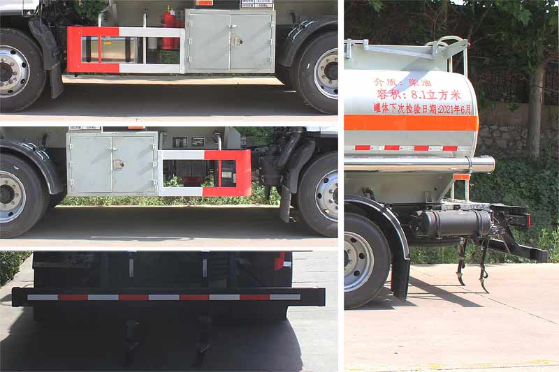 该车罐体有效容积:8.1立方米,罐体外形尺寸(长卓碜高)mm:4310?960?210,危险化学品类型号:3。运输车辆类型:FL。仅选用3800mm轴距。车辆侧面防护装置材质:Q235碳钢,后下部防护装置的材质:碳钢Q235;侧面防护装置的连接方式:螺栓连接;后下部防护装置的连接方式:螺栓连接。后防护截面尺寸为:120?0mm,后防护离地高度为400mm。选装无罐顶防护装置。选装右侧后部工具箱。加油装置型号/生产企业:76YCB-40/山东唯佳机械有限公司;76YHCB-40/山东淄博申威泵业有限公司;76YHCB-40/博山同心汽车专用泵厂;76BCB-40/山东瑞恒机械装备有限公司;JSK-45B1121C稳恩佳力佳(北京)石油化工设备有限公司;CS20D1110F/正星科技有限公司。仅采用发动机F3.8NS6B156,油耗值为:20.81L/100km。仅选用子午线轮胎;排气管前置,前轮采用盘式制动。安装限速装置,限速80Km/h。安装具有卫星定位功能的行驶记录仪。ABS系统控制器型号/生产企业:ABS-E/威伯科汽车控制系统(中国)有限公司,ABS-VI稥/广州瑞立科密汽车电子股份有限公司。转向轮装备轮胎爆胎应急防护装置。该车型可选装ETC车载装置。 |