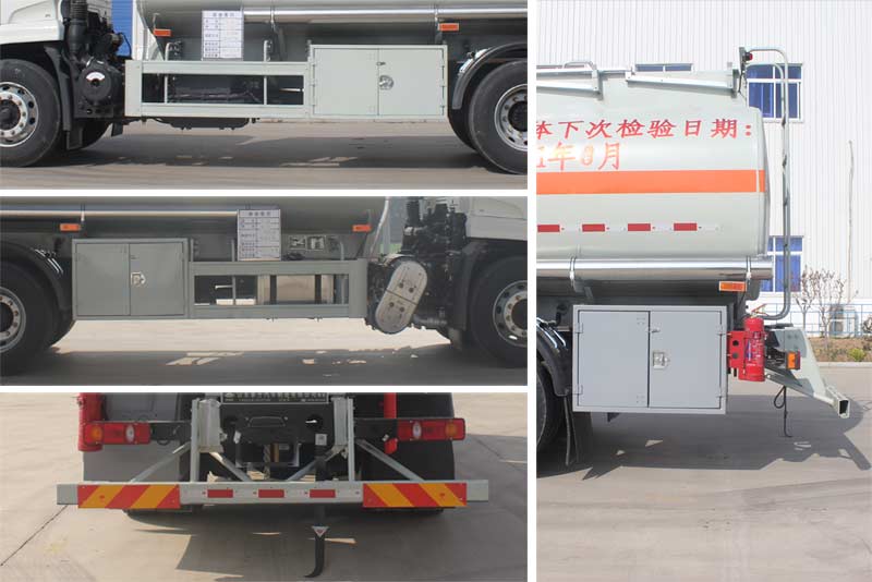 该车罐体有效容积:14.9立方米,罐体外形尺寸(mm):5540?260?510。危险货物类项号:3。危险货物运输车辆类型:FL。仅选用4700mm轴距。车辆侧面防护装置材质碳钢型材,后下部防护装置的材质:碳钢Q235;侧面及后下部装置的连接方式均为螺栓连接。后防护断面尺寸(mm):120?0,离地高度为490mm。随底盘选装驾驶室前面罩和导流罩,选装侧窗玻璃.驾驶室顶部中间三个装饰灯为选装件;前雾灯为选装件;驾驶室前脸扰流罩为选装件.;选装右侧后部工具箱。前轮采用盘式制动,排气管前置,仅选用底盘子午线轮胎。安装限速装置,限速80Km/h。安装具有卫星定位功能的行驶记录仪,ABS型号/生产厂家:3631010-C2000/东科克诺尔商用车制动系统(十堰)有限公司。发动机对应的油耗值为:26.5L/100km(B6.2NS6B210),23.9L/100km(DDi50E190-60)。后悬架形式为空气悬架。转向轮安装轮胎爆胎应急防护装置。该车型可选装ETC车载装置。 |