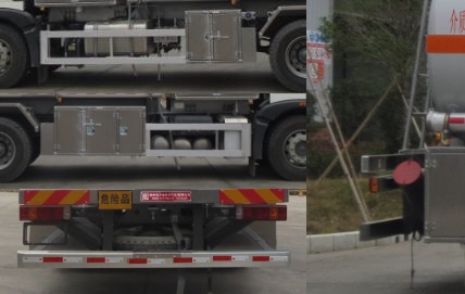 罐体有效容积:12.1立方米,危险货物运输车辆类型:FL型辆,类项号:3;加油装置前置罐体尺寸(长壮ぶ嶙短轴)(mm)为:4750?150?500;随底盘选装驾驶室,选装挡泥板,选装加油仓厢门,选装尾侧无工具箱;侧、后防护装置材料材质:Q235B,侧、后防护均用螺栓连接,后部防护装置断面尺寸(宽赘?80?50(mm),后部防护离地高度:450mm.安装具有卫星定位功能的行驶记录仪,排气管前置,安装前轮盘式制动器及限速装置,限速80km/h,仅采用底盘子午线轮胎.ABS系统型号为4460046300,生产企业为威伯科汽车控制系统(中国)有限公司.加油装置型号/生产企业:CS20D1110F/正星科技有限公司,80YHCB-60/山东博山齐鲁油泵厂,YHCB-1000/5-A,YHCB-1000/5B,YHCB-300/3-B-L/永嘉三江石油机械厂.该车后轴采用空气悬架;转向轮安装爆胎应急防护装置. |
