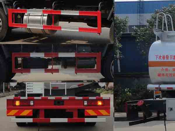 1.类项号:3;罐体有效容积:17.6立方米,罐体外形尺寸(长卓碜高)(mm):8200?100?400,FL型车辆;随底盘选装驾驶等;2.ABS和限速装置为底盘自带,ABS型号为4460046300,生产企业为威伯科汽车控制系统(中国)有限公司;仅选装子午线轮胎,前轮装盘式制动器和轴距(1800+4800)和(1950+4650)的底盘改装;3.侧防护装置,材料:Q235,连接方式:螺栓连接;后下部防护装置,材料:Q235,连接方式:螺栓连接,断面尺寸(mm):120?0,离地高度:500mm;安装具有卫星定位功能的行驶记录仪;发动机型号/油耗值 (L/100km)对应关系:MC07.24-50/34.8, MC07.28-50/35.1,MC07.31-50/35.3,MC07.34-50/35.4;选装后转向轴挡泥板形式。 该车后轴采用空气悬架. |