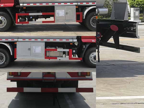 1、该车适用于危险品运输,运送危险货物车辆类型为:FL型.类项号:3,运输介质:汽油,密度:700千克/立方米。罐体有效容积14.7立方米,罐体外形尺寸(长卓碜高)(mm):5900?150?460。罐体上部选装无上走道。选装方形挡泥板。仅采用4700mm轴距。2、侧,后防护材料均为Q235,侧防护,螺栓连接。后防护焊接,截面尺寸120?0mm,下边缘离地高500mm。3、仅选用消声器前置、限速装置(限速80km/h)、前轮盘式制动及子午线轮胎的底盘;安装带有卫星定位功能的行驶记录仪;ABS型号/企业: ABS-E 4S/4M/威伯科汽车控制系统有限公司。发动机/油耗值(L/100Km)对应关系为: YC6JA180-50/26.9,YC6JA200-50/26.9,ISD210 50/26.9。后轴采用空气悬架,转向轮安装轮胎爆胎应急防护装置。 |
