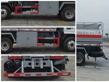 该车适用于危险品运输。运输类项号:3,罐体有效容积:4.36立方米。罐体外形尺寸(长壮ぶ嶙短轴)(mm):4000?600?000。可装配加油机型号及生产企业:BL1111Z/珠海市贝林加油设备有限公司中山分公司,HS1812B/托肯恒山科技(广州)有限公司,SKES-1112/恒和嘉华科技有限公司,SKDS-2001A/上海伯莱机械有限公司,SK20QF-111A,SK20QF-222A/郑州三金石油设备制造有限公司,CS20D1110F/正星科技有限公司,JSK-70B1121CZ,JSK-70B1121C,JSK45B1121C/稳恩佳力佳(北京)石油化工设备有限公司,HT-YV60E/随州市华特专用设备有限公司,XTST121BF1/邢台正润通科技发展有限公司。连接方式:左右侧面防护及后部防护均采用焊接连接,防护材料:Q235B碳钢,防护断面尺寸(mm):100?0,后部防护离地高度(mm):410。仅采用底盘子午线轮胎和带ABS的底盘,该车前轮安装盘式制动器,前置排气管,装配限速装置,限速80km/h。安装带有卫星定位功能的行驶记录仪。ABS厂家及型号:襄阳东风隆诚机械有限责任公司/ABS/ASR-24V-4S/4M。危险货物运输车辆的类型(FL型车辆)。整车长度/轴距/前悬/后悬的对应关系为(mm):5990/3308/1055/1627。随底盘选装前面罩,前保险杠,前组合灯具。随底盘扩展新款驾驶室。转向轮安装轮胎爆胎应急防护装置。 |