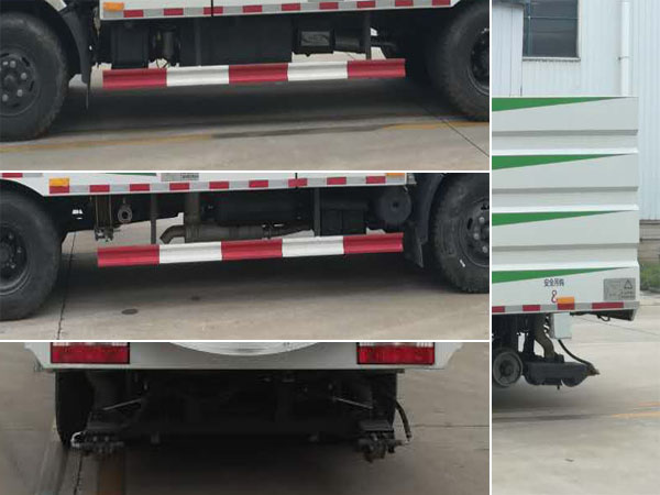 该车主要用于粉尘吸取,专用装置为吸盘.选装吸盘位置及正后厢体结构.当前悬为1130(mm)时,对应后悬为2120(mm).当前悬为1150(mm)时,对应后悬为2100(mm).侧防护材料为Q235,联接方式为连接支架固焊在付车架大梁上.后部防护因结构需要无法安装,专用装置代替,离地高为350(mm).随底盘选装驾驶室.ABS系统生产厂家,型号 :襄阳东风隆诚机械有限责任公司,ABS/ASR-24V-4S/4M |