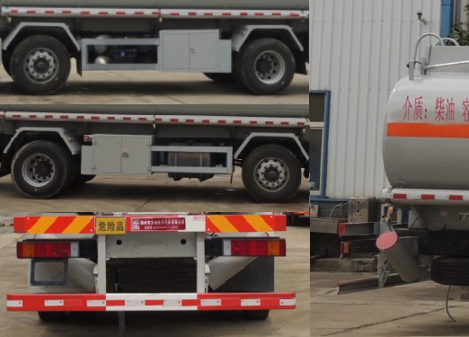 罐体有效容积:20.2立方米,危险货物运输车辆的类型:FL型车辆,类项号:3;罐体尺寸(长壮ぶ嶙短轴)(mm)为:7100?300?600,仅采用1950+4150mm轴距;侧、后防护装置材质均为:Q235B,侧、后防护均采用螺栓连接,后部防护装置断面尺寸(宽赘?80?50(mm),后部防护离地高度:500mm;安装具有卫星定位功能的行驶记录仪,仅采用子午线轮胎,前盘制动器,排气管前置的底盘;安装限速装置,限速80km/h的底盘,随底盘选装驾驶室,选装挡泥板样式;ABS型号/企业:ABS-E 4S/4M/威伯科汽车控制系统有限公司;发动机型号及油耗值(L/100km)为:ISD245 50(31.7),ISD270 50(32.6),YC6A240-50(32.9),YC6A270-50(32.9),YC6JA240-50(33.1).该车后轴采用空气悬架;转向轮安装爆胎应急防护装置. |