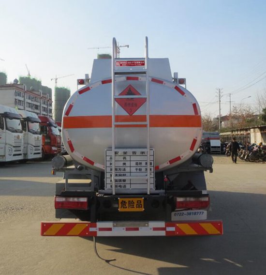罐体有效容积:8.74立方米,危险货物运输车辆的类型:FL型车辆,类项号:3;罐体尺寸(长壮ぶ嶙短轴)(mm)为:4700?800?300;侧、后防护装置材质均为:Q235B,侧、后防护均采用螺栓连接,后部防护装置断面尺寸(宽赘?80?50(mm),后部防护离地高度:420mm;安装具有卫星定位功能的行驶记录仪,仅采用子午线轮胎,前盘制动器,排气管前置的底盘;安装限速装置,限速80km/h的底盘,随底盘选装驾驶室,选装箱门样式;ABS生产厂家/型号:上海万捷汽车控制系统有限公司/VIE ABS-II;发动机型号及油耗值(L/100km)为:WP3.7Q130E50(23.68),CA4DC3-12E5(23.6),WP4.1Q160E50(24.69),CA4DH1-16E5-30(24.59),CA4DD1-15E5(23.38),WP3.7Q140E50(23.68).转向轮安装爆胎应急防护装置. |