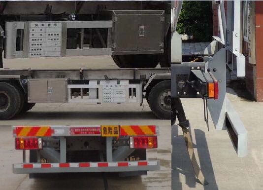 罐体有效容积:30.6立方米,危险货物运输车辆的类型:FL型车辆,类项号:3;罐体尺寸(长壮ぶ嶙短轴)(mm)为:9000?470?770,8800?470?770;侧、后防护装置材质均为:Q235B,侧、后防护均采用螺栓连接,后部防护装置断面尺寸(宽赘?80?50(mm),后部防护离地高度:500mm;安装具有卫星定位功能的行驶记录仪,仅采用子午线轮胎,前盘制动器,排气管前置的底盘;安装限速装置,限速80km/h的底盘,随底盘选装驾驶室,选装挡泥板样式;ABS生产厂家:上海万捷汽车控制系统有限公司,ABS型号:VIE ABS-II;发动机对应油耗值 (L/100km)为:CA6DK1-32E5(43.2),CA6DL1-32E5(43.2).该车后轴采用空气悬架;转向轮安装爆胎应急防护装置. |