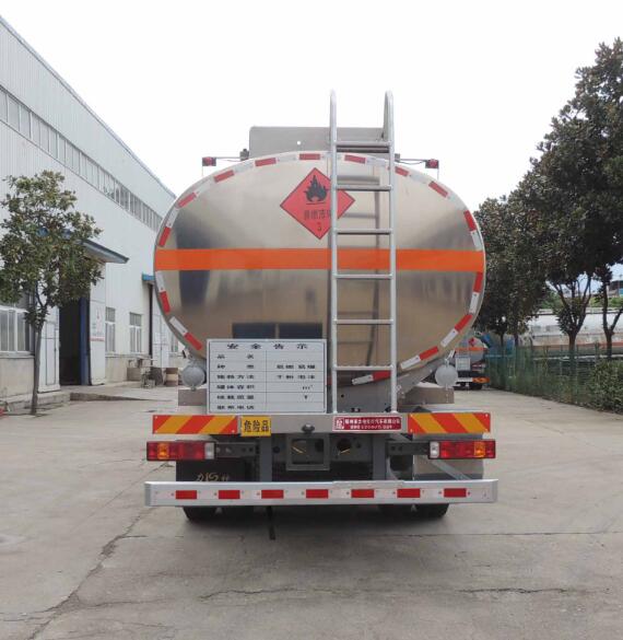 罐体有效容积:25.8立方米,危险货物运输车辆的车辆类型:FL型车辆,类项号:3.罐体尺寸:长8100毫米,长轴2400毫米,短轴1700毫米.仅采用1800+3775+1400mm轴距,随底盘选装驾驶室,选装后尾侧无出口箱,选装出口箱样式,选装挡泥板.侧,后防护装置材料材质:Q235B,侧,后防护均用螺栓连接,后部防护装置断面尺寸(宽赘?80?50(mm),后部防护离地高度:500mm.安装具有卫星定位功能的行驶记录仪,排气管前置,安装前轮盘式制动器及限速装置,限速80km/h,仅采用底盘子午线轮胎.ABS系统型号为4460046300,生产企业为威伯科汽车控制系统(中国)有限公司.加油机型号及生产厂家:CS20D1110F/正星科技有限公司;HS1812B/托肯恒山科技(广州)有限公司;BL1111Z/珠海市贝林加油设备有限公司中山分公司;SKES-1112/恒和嘉华科技有限公司(上海伯莱机械有限公司);ZH6444/佛山市众泽机电科技有限公司;JSK-70B1121CZ,JSK-70B1121C,JSK45B1121C/稳恩佳力佳(北京)石油化工设备有限公司.该车后轴采用空气悬架;转向轮安装爆胎应急防护装置. |