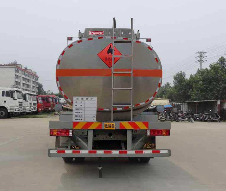 罐体有效容积:24立方米,危险货物运输车辆的类型为:FL型车辆,类项号:3;罐体尺寸(长壮ぶ嶙短轴)(mm)为:7450?400?700;轴距/前悬/后悬对应关系分别为(mm):1800+4100/1430/2870;1800+5000/1430/1970;侧、后防护装置材料材质:Q235B,侧、后防护均用螺栓连接,后部防护装置断面尺寸(宽赘?80?50(mm),后部防护离地高度:500mm;选装箱门样式,选装挡泥板样式,随底盘选装驾驶室;安装具有卫星定位功能的行驶记录仪,排气管前置,安装前轮盘式制动器和限速装置,限速80km/h,仅采用底盘子午线轮胎;ABS生产厂家:东科克诺尔商用车制动系统(十堰)有限公司;型号:3631010-C2000;发动机型号及油耗值(L/100km)为:ISD210 50(33.7),ISD245 50(33.6),ISD270 50(33.6),ISB210 50(33.7),ISB220 50(34.2),ISD285 50(33.5).该车后轴采用空气悬架;转向轮安装爆胎应急防护装置. |