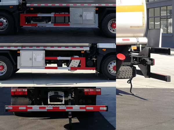 1、该车适用于危险品运输,运送危险货物车辆类型为:FL型,类项号:3。罐体有效容积:14.5立方米,运输介质:汽油,密度:700千克/立方米,罐体外形尺寸(长卓碜高)(mm):5700?150?480。2、侧、后防护材料为Q235,螺栓连接。后防护截面尺寸120?0mm,下边缘离地高500mm。罐体上部选装上走道;选装后部尾灯架样式;选装弧形挡泥板。3、仅采用轴距(mm):4700。随底盘选装同系列的高顶驾驶室,选装气喇叭,遮阳罩,绿色滤光带,踏步。仅选用排气管前置、限速装置(限速80km/h)、前轮盘式制动及子午线轮胎的底盘;安装带有卫星定位功能的行驶记录仪;ABS系统生产厂家,型号:焦作博瑞克控制技术有限公司,J ABS。采用的发动机与油耗值(L/100Km)对应关系为: B6.2NS6B230/26.7,D4.5NS6B220/26.6,YCS04200-68/26.4,CY4SK761/26.8。 该车后轴为采用空气悬架。转向轮安装轮胎爆胎应急防护装置。 |