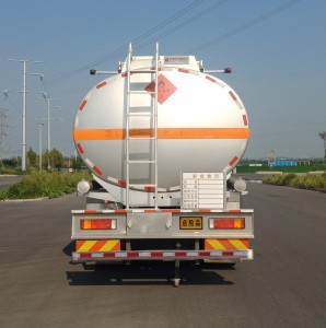 罐体有效容积:26立方米;罐体外形尺寸:长 8200毫米,长轴 2530毫米,短轴 1612毫米;危险货物运输车辆类型:FL 型车辆;危险品类项号:3;侧面防护装置材质:铝合金,连接方式:螺栓连接;后下部防护装置材质:铝合金,连接方式:螺栓连接,断面尺寸 120?0 毫米,离地高度 450 毫米;排气管前置;前轮采用盘式制动器;采用子午线轮胎;采用限速装置,限速80千米/小时;ABS型号/生产厂家:ABS 8/东科克诺尔商用车制动系统(十堰)有限公司.安装具有卫星定位功能的行驶记录仪.发动机DDi75E350-60对应的油耗值(L/100km)为38.1. 该车后轴为采用空气悬架.选装胶管箱样式;选装尾部封板结构.转向轮装备轮胎爆胎应急防护装置.选装中部卸料箱及工具箱样式,选装摄像头支架及加高扶手. |