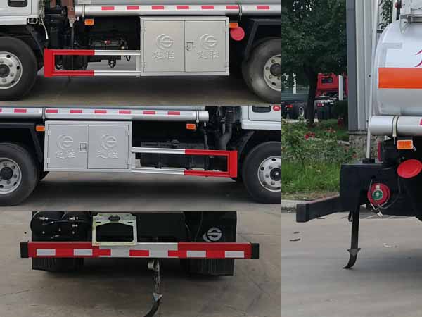 1、该车适用于危险品运输,运送危险货物车辆类型为:FL型,类项号:3。运输介质:汽油,密度:700千克/立方米,罐体有效容积5.35立方米,罐体外形尺寸(长卓碜高)(mm):①加油机侧装在车架左侧:3800?700?060,②加油机装在罐体前部:3900?750?250(加油机仓长800);③选装罐体前加油机仓:3100?750?250。罐体上部选装折叠护栏、选装无上走道。2、侧防护采用冷弯型钢/Q235,螺栓连接。后防护采用冷弯型钢/Q235,焊接,截面高100mm,截面宽50mm,下边缘离地高450mm。加油机型号及生产企业:BL1111Z/珠海市贝林加油设备有限公司中山分公司,HS1812B/托肯恒山科技(广州)有限公司,SKES-1112/恒和嘉华科技有限公司(上海伯莱机械有限公司),SK20QF-111A、SK20QF-222A/郑州三金石油设备制造有限公司,CS20D1110F/正星科技有限公司,JSK-70B1121CZ,JSK-70B1121C,JSK45B1121C/稳恩佳力佳(北京)石油化工设备有限公司, ZH6444/佛山市众泽机电科技有限公司, XTST121BF1/邢台正润通科技发展有限公司,TA-1111KFJ/沈阳航天新阳机电有限公司。3、随底盘选装前面罩,前保险杠,前组合灯具,选装左右油箱位置。仅选用排气管前置、限速装置(限速80km/h)、前轮盘式制动及子午线轮胎的底盘,安装带有卫星定位功能的行驶记录仪。ABS厂家及型号:襄阳东风隆诚机械有限责任公司/ABS/ASR-24V-4S/4M。转向轮安装轮胎爆胎应急防护装置。 |