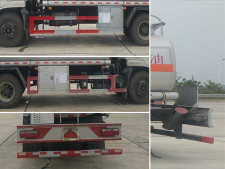 1,该车运送危险货物车辆类型为:FL型,装配限速装置,限速80km/h。类项号:3。运输介质:柴油,汽油,煤油,密度:830、700、800千克/立方米,罐体有效容积12.53立方米,罐体外形尺寸(长卓碜高)(mm):5800?150?460。2,侧/后防护材料为Q235,侧防护螺栓连接,后防护焊接,截面尺寸120?0mm,离地高500mm。加油机型号及生产企业:BL1111Z/珠海市贝林加油设备有限公司中山分公司,HS1812B/托肯恒山科技(广州)有限公司,SKES-1112/恒和嘉华科技有限公司(上海伯莱机械有限公司),SK20QF-111A,SK20QF-222A/郑州三金石油设备制造有限公司,CS20D1110F/正星科技有限公司,JSK-70B1121CZ,JSK-70B1121C,JSK45B1121C/稳恩佳力佳(北京)石油化工设备有限公司, ZH6444/佛山市众泽机电科技有限公司.3,随底盘选装驾驶室;仅选用消声器前置,限速装置,前轮盘式制动及子午线轮胎的底盘;该车应装具有卫星定位功能的行驶记录仪;ABS型号/厂家:ABS-E 4S/4M, 3631010-C2000 /威伯科汽车控制系统(中国)有限公司,东科克诺尔商用车制动系统(十堰)有限公司。 该车后轴为采用空气悬架.转向轮安装轮胎爆胎应急防护装置。 |