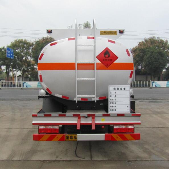 随底盘选装前面罩,前保险杠,前组合灯具,选装排半驾驶室,选装无走道,选装工具箱样式;该车适用于危险品运输,罐体有效容积8.88立方米,危险品车辆类型:FL型车辆,类项号:第3类;罐体外形尺寸(长卓碜高)(mm):4700?900?270(加油机外装在车架侧),4700?050?400(加油机内装在罐体前部,加油机仓长800mm);侧后防护材料均为Q235,连接方式:左右侧面防护与车架大梁采用螺栓连接,后下部防护与车架大梁采用焊接连接,后部防护断面尺寸(mm):130?0,后部防护离地高度(mm):450;加油机型号及生产企业:BL1111Z/珠海市贝林加油设备有限公司中山分公司,HS1812B(小流量),HS2812B(大流量)/托肯恒山科技(广州)有限公司,SKES-1112/恒和嘉华科技有限公司(上海伯莱机械有限公司),SK20QF-111A、SK20QF-222A/郑州三金石油设备制造有限公司,CS20D1110F/正星科技有限公司,JSK-70B1121CZ,JSK-70B1121C,JSK45B1121C/稳恩佳力佳(北京)石油化工设备有限公司, ZH6444/佛山市众泽机电科技有限公司,XTST121BF1/邢台正润通科技发展有限公司;该车应装具有卫星定位功能的行驶记录仪;仅采用前置排气管、限速装置、前盘制动器及子午线轮胎的底盘;ABS系统生产厂家,型号:襄阳东风隆诚机械有限责任公司,ABS/ASR-24V-4S/4M;该车后轴为采用空气悬架;转向轮安装轮胎防爆应急防护装置. |