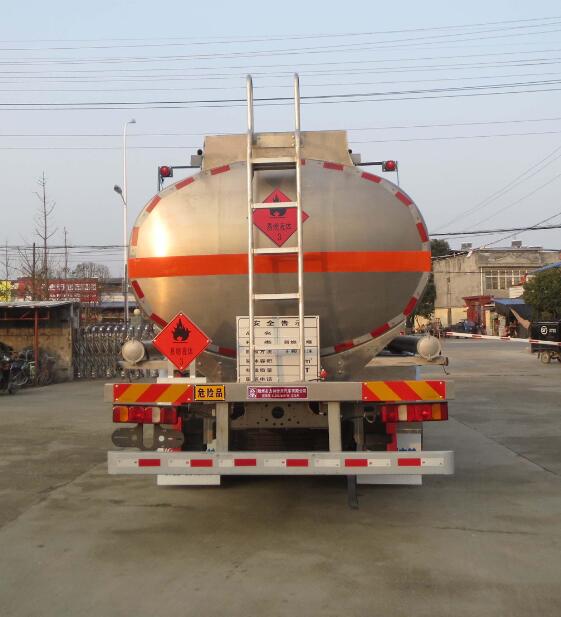 罐体有效容积:25.1立方米,危险货物运输车辆的类型为:FL型车辆,类项号:3;罐体尺寸:长8750毫米,长轴2280毫米,短轴1590毫米;随底盘选装驾驶室,选装挡泥板及前爬梯,选装出口箱样式,选装罐体顶部举升护栏;侧、后防护装置材料材质:Q235B,侧、后防护均用螺栓连接,后部防护装置断面尺寸(宽赘?80?50(mm),后部防护离地高度:500mm.安装具有卫星定位功能的行驶记录仪,排气管前置,安装前轮盘式制动器及限速装置,限速80km/h.仅采用底盘295/80R22.5 18PR,12R22.5 18PR,11.00R20 18PR 轮胎.ABS系统型号为4460046300,生产企业为威伯科汽车控制系统(中国)有限公司.发动机型号及油耗值(L/100km)为:MC07.31-50(43.53,43.61),MC07.34-50(43.79,43.84),MC07.35-50(43.9,43.92).该车后轴采用空气悬架;转向轮安装爆胎应急防护装置. |