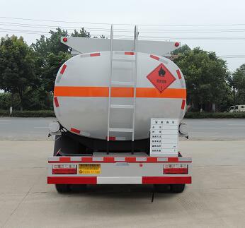 罐体有效容积9.15立方米,危险运输车辆类型为:FL型,类项号:3;仅用于运输汽油;罐体外形尺寸(长卓碜高)(mm):4800?050?420(加油机内装在罐体前部,加油机仓长850mm),4800?950?400(加油机外装在车架左侧或右侧,安装位置可前后变化);侧后防护材料均为Q235,连接方式:左右侧面及后防护均与车架大梁采用螺栓连接,后部防护断面尺寸(mm):130?0,后部防护离地高度(mm):450;加油机型号及生产企业:BL1111Z/珠海市贝林加油设备有限公司中山分公司,HS1812B/托肯恒山科技(广州)有限公司,SKES-1112/恒和嘉华科技有限公司(上海伯莱机械有限公司),SK20QF-111A、SK20QF-222A/郑州三金石油设备制造有限公司,CS20D1110F/正星科技有限公司,JSK-70B1121CZ,JSK-70B1121C,JSK45B1121C/稳恩佳力佳(北京)石油化工设备有限公司, ZH6444/佛山市众泽机电科技有限公司;随底盘选装驾驶室,选装走道、工具箱及后部装置,该车应装具有卫星定位功能的行驶记录仪;仅选用前置排气管、限速装置、前盘制动器及子午线轮胎的底盘;ABS系统生产厂家及型号:襄阳东风隆诚机械有限责任公司,ABS/ASR-24V-4S/4M;转向轮安装轮胎防爆应急防护装置. |