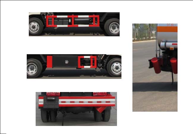 罐体有效容积:5.047立方米,类项号:3,运输介质:汽油,密度:700千克/立方米.罐体外形尺寸 (长卓碜高) (mm):3800?700?150(3800?650?060)(加油机外装),4100?800?280(加油机内装,加油机仓长900mm).随底盘选装驾驶室.侧,后防护装置材料材质为Q235,侧,后防护装置与大梁用螺栓联接.后防护断面尺寸(宽赘?50?70(mm),离地高度为500mm..仅采用该底盘的前盘制动器及子午线轮胎.安装具有卫星定位功能的行驶记录仪. ABS厂家及型号:襄阳东风隆诚机械有限责任公司/ABS/ASR-24V-4S/4M. 加油机型号/生产厂家:SK22QF222A/郑州三金石油设备制造有限公司, CS20D111OF/正星科技有限公司, 20QF111A/郑州三金石油设备制造有限公司, HS1812B/托肯恒山科技有限公司,XTST121BF1/邢台正润通科技发展有限公司.选装工具箱位置及上走道外形.转向轮安装爆胎应急防护装置. |