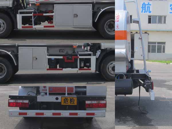罐体尺寸:罐长3.8米,长轴1.6米,短轴0.97米.有效容积4.1立方米.危险品类项号:3.侧后防护材质均为碳钢,螺栓连接.后防护截面尺寸为120x60(高x宽)毫米,下面距地高为450毫米.加油机型号/厂家:JSK-70B1121C/稳恩佳力佳(北京)石油化工设备有限公司,CS20D1110F/正星科技有限公司,BL1111Z/珠海市贝林加油设备有限公司.该车安装前轮盘式制动,排气管前置.限速装置,最高车速为80km/h.ABS型号/厂家:CM4XL-4S/4M/广州科密汽车电子控制技术股份有限公司.安装有卫星定位功能的行驶记录仪.罐顶防护栏和车辆后端两侧箱子可选装.随底盘选装驾驶室.该车型为危险货物运输车辆.该车转向轮已随底盘装备轮胎爆胎应急防护装置. |