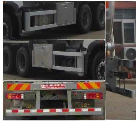 罐体有效容积:20.2立方米,危险货物运输车辆类型为FL型,类项号:3,罐体尺寸:长7100毫米,长轴2300毫米,短轴1600毫米.选装挡泥板,选装出口箱样式.侧,后防护装置材料材质:Q235B,侧,后防护均用螺栓连接,后部防护装置断面尺寸(宽赘?80?50(mm),后部防护离地高度:500mm.安装具有卫星定位功能的行驶记录仪,安装前轮盘式制动器,排气管前置及限速装置,限速80km/h,仅采用底盘子午线轮胎.ABS系统型号为4460046300,生产企业为威伯科汽车控制系统(中国)有限公司.发动机型号与油耗值(L/100km)的对应关系为:MC07.24-50(38.14,37.99),MC07.28-50(38.53,38.4),MC07.31-50(38.65,38.63).该车后轴采用空气悬架;转向轮安装爆胎应急防护装置. |