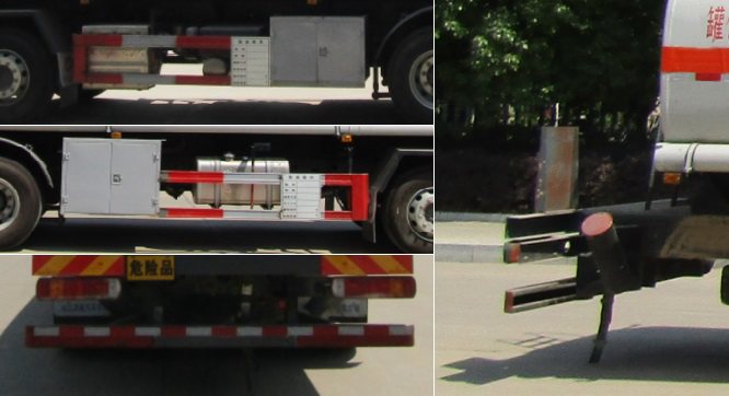 该车适用于危险品运输,罐体有效容积:22.9立方米,类项号:3,罐体尺寸:长8960毫米,长轴2340毫米,短轴1660毫米;侧后防护材料均为Q235,连接方式:左右侧面防护与车架大梁采用螺栓连接,后下部防护与车架大梁采用焊接连接,后部防护断面尺寸(mm):130?0,后部防护离地高度(mm):480;后轴采用空气悬架;安装具有卫星定位功能的行驶记录仪,安装前轮盘式制动器,排气管前置,仅采用底盘子午线轮胎.ABS系统型号为4460046300,生产企业为威伯科汽车控制系统(中国)有限公司.发动机型号为:MC07.28-50,MC07.31-50,MC07.34-50,MC07.35-50;油耗值(L/100km)为:43.4,43.5,43.8,43.9;转向轮安装轮胎防爆应急防护装置. |