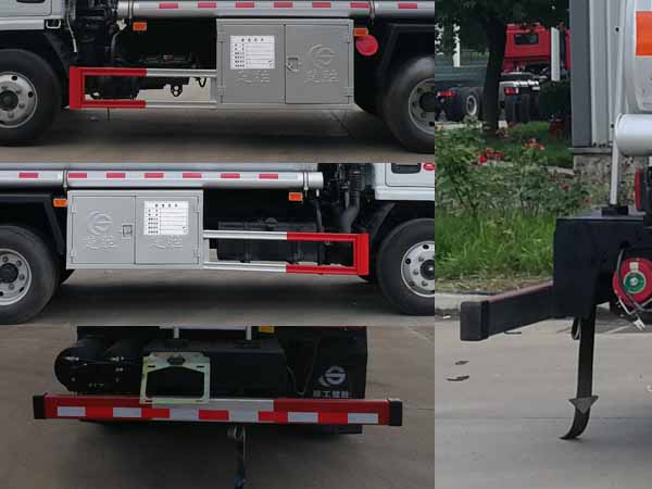 1、该车适用于危险品运输,运送危险货物车辆类型为:FL型,类项号:3。运输介质:柴油、煤油、汽油,密度:830、800、750千克/立方米,罐体有效容积4.5立方米,罐体外形尺寸(长卓碜高)(mm):3800?600?050。罐体上部选装折叠护栏、选装无上走道;选装弧形挡泥板。2、侧,后防护材料均为Q235.侧防护螺栓连接;后防护焊接,截面尺寸100?0mm,下边缘离地高450mm。3、随底盘选装前面罩,前保险杠,前组合灯具,选装左右油箱位置。仅选用排气管前置、限速装置(限速80km/h)、前轮盘式制动及子午线轮胎的底盘,安装带有卫星定位功能的行驶记录仪。转向轮安装轮胎防爆应急防护装置。ABS厂家及型号:襄阳东风隆诚机械有限责任公司/ABS/ASR-24V-4S/4M。发动机/油耗值(L/100km)对应关系为:CY4BK461/16.2,CY4BK161/16.2,YCY24140-60/16.2,D20TCIF1/16.2,D25TCIF1/16.2,CA4DB1-11E6/16.2,CA4DB1-13E6/16.2,CY4BK361/16.2,Q23-115E60/14.5,Q28-130E60/14.9.转向轮安装轮胎爆胎应急防护装置。 |