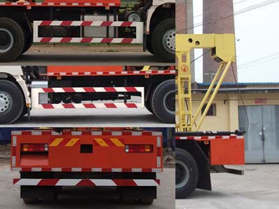 该车为油田作业车.后伸量:440mm.随底盘选装同系列驾驶室、前面罩、遮阳罩、保险杠.侧后防护所用材料:Q235;连接方式:螺栓连接;后防护截面尺寸(mm):120?0,离地高度(mm):415.ABS系统生产厂家及对应型号:西安正昌电子有限责任公司(型号:ZQFB-V),广州市科密汽车制动技术开发有限公司(型号:CM4XL-4S/4K),浙江万安科技股份有限公司(型号:VIE ABS-Ⅱ).安装带卫星定位功能的行驶记录仪.随底盘选装限速装置,限速89km/h. |
