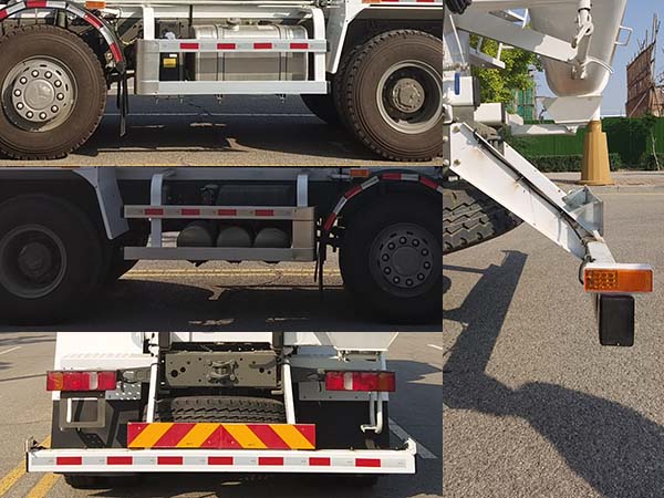 | ABS型号:4460046300;ABS生产企业:威伯科汽车控制系统(中国)有限公司;安装有具有卫星定位功能的行驶记录仪;选装描述:随底盘选装驾驶室,选装无遮阳罩,选装无后风窗,选装侧支架样式、斜拉撑样式、选装进料斗部件样式.因发动机不同,选装尿素箱,电瓶箱和储气筒,备胎等零部件整车布置结构.该车型可选装ETC车载装置,仅选用底盘钢板弹簧悬架形式;发动机/油耗值(L/100km)对应关系为:发动机MC07.35-50对应油耗申报值36.88L/100km,发动机MC07.34-50对应油耗申报值36.88L/100km,发动机MC07.31-50对应油耗申报值36.88L/100km,发动机MC07H.35-50对应油耗申报值37.08L/100km,发动机WP8.340E51对应油耗申报值36.25L/100km;侧后防护情况:侧防护材料为铝合金6063-T5,连接方式为螺栓连接;后防护材料为Q235,断面尺寸120mmX80mm,与车架采用螺栓连接,后防护离地高度为490mm;搅拌罐相关参数:罐体搅动容量为7.95立方米.罐体总长6050mm,最大直径φ2220mm,罐体安装角度14.8? |