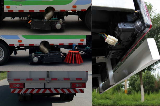 该车另有4种工作装置可选装:选装吸渣盘时外形尺寸(宽)为2180mm。选装吸扫盘时外形尺寸(宽)为2310mm。选装吸尘盘A时外形尺寸(宽)为2430mm。侧面防护为裙边结构代替,后下部防护装置材料为Q235,断面尺寸:30?00(mm),离地高度460mm,采用螺栓连接。可不安装侧清扫盘刷。选装后部吸尘管。选装另一种箭头警示灯样式。选装另一种箱体。ABS型号和生产厂家为:44600XXXX0、威伯科汽车控制系统(中国)有限公司。车辆安装吸尘盘,用于道路清扫作业。 |