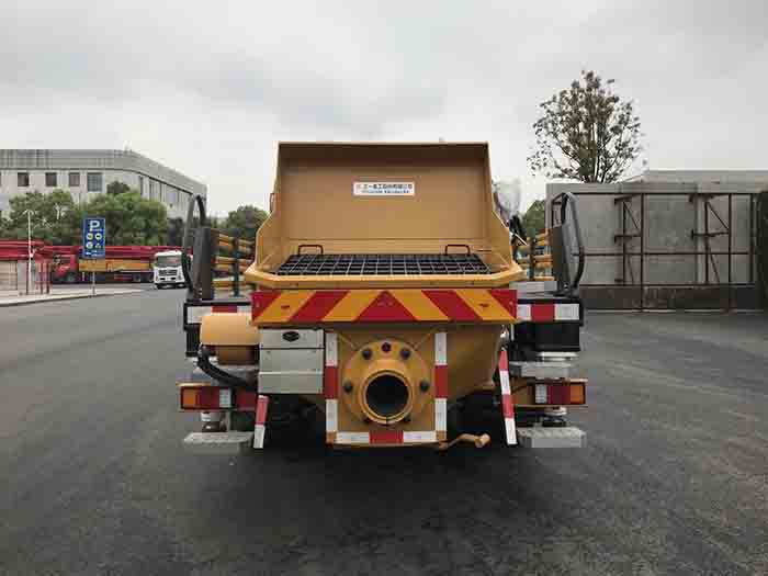 | 该车为特种作业类车辆,用于混凝土输送,主要固定装置为混凝土输送泵等。侧防护栏的材质为6005A铝合金,连接方式为螺栓连接;后部为混凝土料斗工作装置,料斗最下端离地高度为495mm,起后下部防护作用。装有ABS,ABS型号:CM4XL-4S/4M;ABS厂家:广州科密汽车电子控制技术股份有限公司。车辆顶部选装进气、排气系统装置,不加装和加装后对应的整车高度分别为2700mm和3040mm。选装驾驶室颜色、侧防护颜色。随底盘选装遮阳板、油箱;选装顶置空调,此时高度3100mm。 |