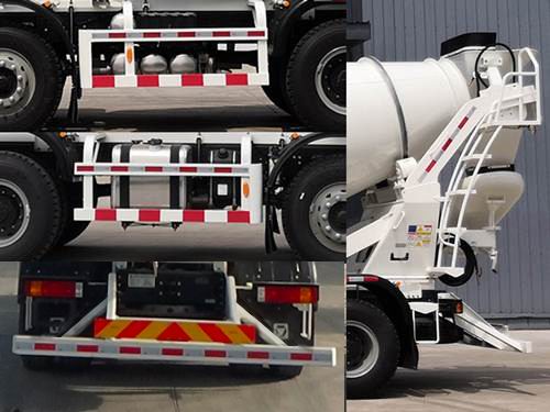 | ABS型号:CM6XL-6S/6K(6S/6M),CM4XL-4S/4K(4S/4M),ZQFB-V,VIE ABS-Ⅱ;ABS生产企业:广州市科密汽车制动技术开发有限公司,广州市科密汽车制动技术开发有限公司,西安正昌电子有限责任公司,浙江万安科技股份有限公司;安装有具有卫星定位功能的行驶记录仪;选装描述:选装挡泥板结构形式,随底盘选装驾驶室及后组合灯外观,选装翼子板、选装消音器安装位置、选装倾斜式备胎架,该车型可选装ETC车载装置;发动机/油耗值(L/100km)对应关系为:WP7.300E51,WP7.340E53,WP8.340E51,ISM11E5 345,WP10.350E53,WP10.336E55,WP10H400E50,WP9H336E50,WP10H375E50,WP10.336E53油耗值分别为37.4L/100km,37.4L/100km,36.61L/100km,37.25L/100km,37.07L/100km,37.23L/100km,36.34L/100km,37.41L/100km,36.34L/100km,37.07L/100km;所用材料材质、连接方式以及后部防护装置的主要尺寸参数(断面尺寸和离地高度):侧防护装置为金属护栏,材料为Q235钢板,截面高度100mm,后防护材料为Q235,断面尺寸为120?0mm,后防护离地高度为490mm,连接方式均为螺栓连接;搅动容量、罐体安装角度、罐体长度和罐体最大直径:搅动容量7.82立方米,罐体最大长度5950mm,最大直径2260mm.罐体安装角度12.5? |