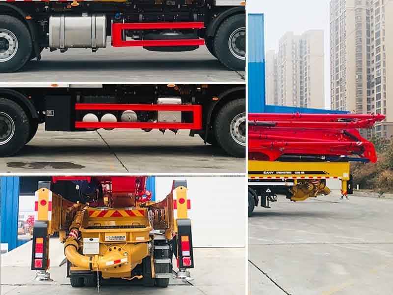 | 总长14880mm时,后伸1950mm对应轴距2200+4400+1350mm,后伸1890对应轴距2260+4400+1350mm;总长14680mm时,后伸1750mm对应轴距2200+4400+1350mm,后伸1690对应轴距2260+4400+1350mm。该车为专用作业车辆,用于混凝土输送,主要固定装置为混凝土输送泵,臂架等.侧防护栏的横杆材质为SPCC型钢,撑杆材质为钢管Q235B;连接方式为螺栓连接;后部为混凝土料斗工作装置,离地高495mm,起后防护作用。ABS生产企业:广州科密汽车电子控制技术股份有限公司,ABS型号:CM4XL-4S/4M。随底盘选装驾驶室颜色、油箱,选装号牌板位置、料斗盖板及侧防护装置。随底盘扩展第二轴轮罩。 |