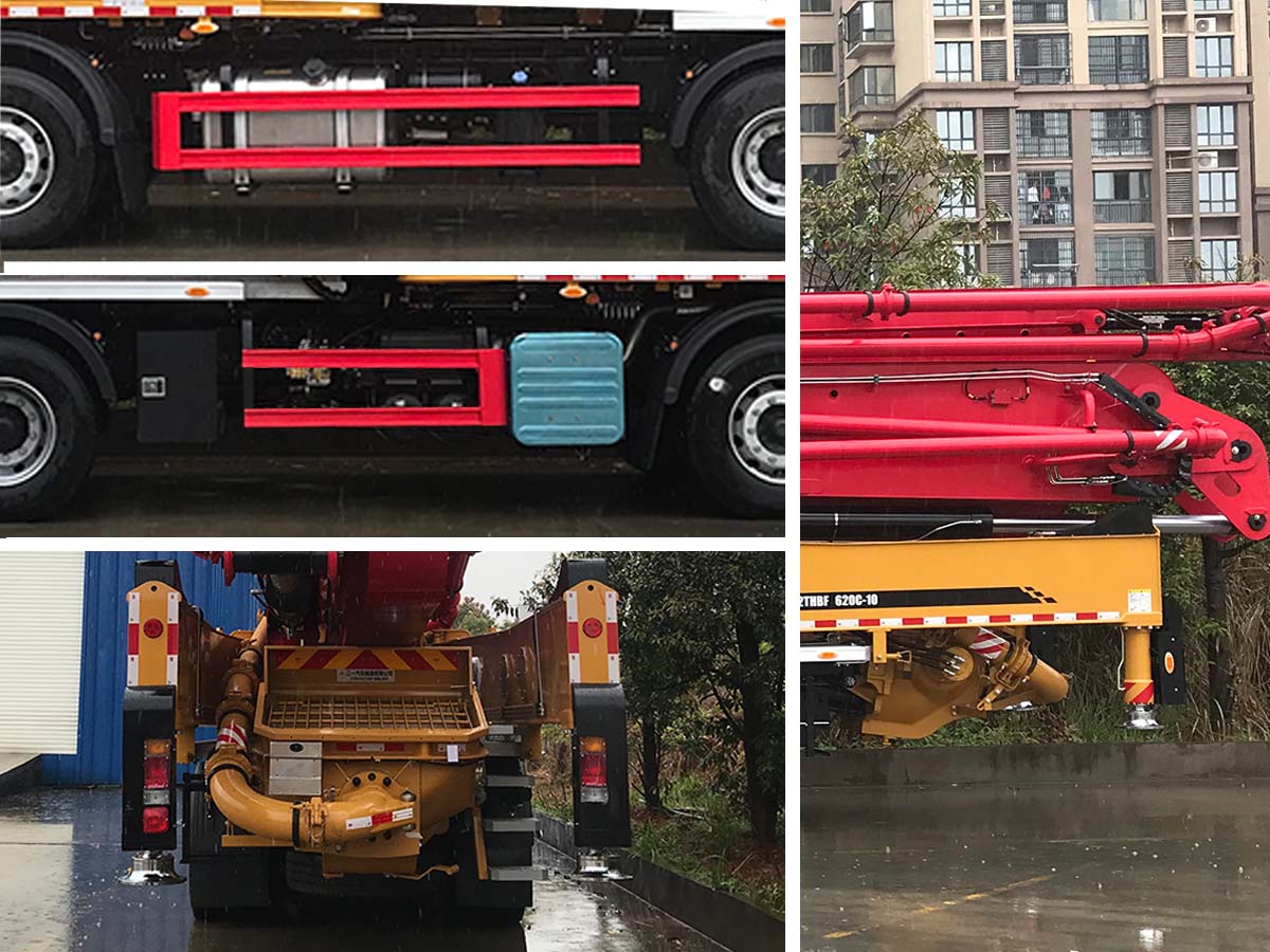 | 后伸1855mm时,对应轴距2100+4325+1370mm。后伸1780mm时,对应轴距2100+4400+1370mm。该车为特种作业类车辆,用于混凝土输送。该底盘ABS系统型号为APG3550500H1,生产企业为浙江亚太机电股份有限公司。侧防护栏的横杆材质为SPCC型钢,撑杆材质为Q235B,连接方式为螺栓连接;后部为混凝土料斗工作装置,离地高度495mm,起后下部防护作用。选装尾部标志板位置、牌照板位置及料斗盖板。随底选装油箱。 |