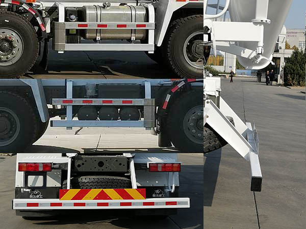 | 罐体搅动容量为7.73立方米.罐体总长6000mm,最大直径φ2300mm,罐体安装角度12.8?侧防护材料为铝合金6063-T5选装为Q235,连接方式为螺栓连接;后防护材料为Q235,断面尺寸120mmX80mm,与车架采用螺栓连接,后防护离地高度为490mm.发动机与油耗值对应关系为:发动机MC07.35-50对应油耗申报值36.88L/100km,发动机MC07.34-50对应油耗申报值36.88L/100km,发动机MC07.31-50对应油耗申报值36.88L/100km,发动机MC07H.35-50对应油耗申报值37.08L/100km,发动机WP8.340E51对应油耗申报值37.4L/100km,ABS系统型号为4460046300,生产企业为威伯科汽车控制系统(中国)有限公司.安装具有卫星定位功能的行驶记录仪.随底盘选装驾驶室,选装无遮阳罩,选装无后风窗,选装侧支架样式、斜拉撑和后接料斗样式.该车型可选装ETC车载装置. |