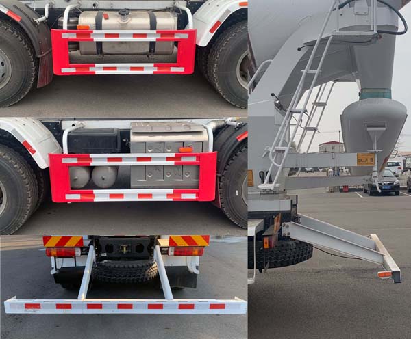 | 罐体搅动容量7.2立方米.罐体总长6580mm,最大直径2000mm,罐体安装角度12.5?侧后防护材质:Q235.侧防护支撑座与副车架焊接,侧防护与支撑座螺栓连接;后防护和选装后防护均与车架螺栓联接,后防护断面尺寸:120mm?0mm,后防护离地高度:490mm.安装具有卫星定位功能的行驶记录仪.ABS型号:CM4XL,ABS生产企业:长春瑞立科密汽车电子有限公司.发动机CA6DL6-38E6油耗值37.09L/100km;选装接料斗、出料斗、选装梯子、斜拉撑、后防护等 |